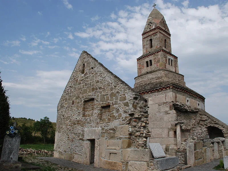 Unii cred că a fost la început un templu roman al Zeului Marte, transformat în biserică în sec. XII – XIII. Alţii susţin că era în Antichitate mausoleul generalului roman Longinus Maximus a cărui soţie a descoperit religia creștină şi a amenajat în locul mausoleului prima biserică de la nord de Dunăre.